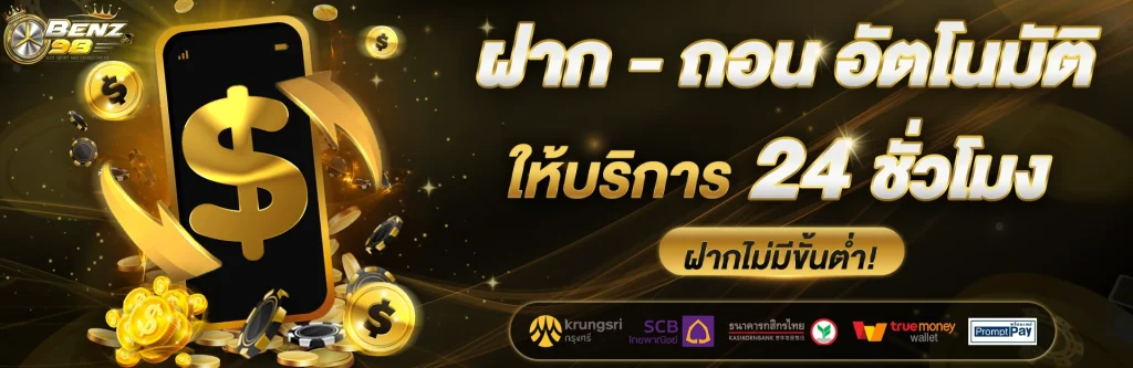 ที่ BENZ98 เราให้ความสำคัญกับความสะดวกสบายของสมาชิก จึงรองรับการทำธุรกรรมผ่านทุกธนาคารชั้นนำในประเทศไทย รวมถึง e-wallet ยอดนิยมอย่าง True Money Wallet ทำให้คุณสามารถจัดการเงินได้ง่ายๆ ตลอด 24 ชั่วโมง ระบบทำงานอัตโนมัติแบบเรียลไทม์ ทำให้การฝากถอนเสร็จภายในไม่กี่วินาที